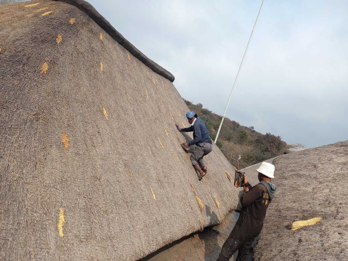 We specialise in full roof construction, re-thatching, Harvey thatch conversions, maintenance, fire protection applications, and roof rejuvenation. From private homes to lodges, resorts, game farms, entertainment areas, and commercial properties — we build and restore thatched structures that are not only beautiful but also durable and safe.